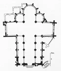 - Le transept est édifié au XIVe siècle ainsi que la moitié de la nef.