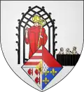 Chapitre royal de Saint-Nicolas d'Avesnes-sur-Helpe : D'argent à un Saint Nicolas de carnation vêtu pontificalement de gueules, crosse et mitre d'or dans une niche à l'antique de sable, ayant au bas du flanc senestre une cuve de sable dans laquelle sont trois enfants de carnation et en pointe un écusson en losange brochant sur le saint et la cuve : Écartelé; au 1) d’argent à 3 fasces de gueules, au 2) de gueules plain, au 3) d’argent à 3 doloires de gueules, au 4) d’azur à 3 fleurs de lis d’or; sur le tout: parti, au 1) coupé a) d’or au créquier de gueules, b) d’or au lion de sable, 2) d’hermine plain. |