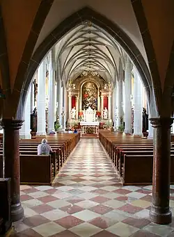 Cette église est la dernière église-halle du sud de l'Allemagne à avoir été construite à l'époque gothique. Elle mesure 52 mètres de longueur, 18 mètres de largeur et 13 mètres de hauteur au milieu de la nef. Les tours s'élèvent à 48 mètres de hauteur.