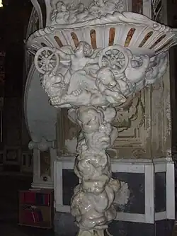- la chaire baroque de marbre blanc du sculpteur Pasquale Bocciardo illustrée par le char de feu de l'Apocalypse et ses animaux ailés du tétramorphe de la Vision d'Ézéchiel (1765)