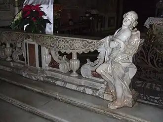 - Statue en bois polychrome du Christ en croix de Francesco M. Agnesi dit Il Corsetto (1693) sur autel de marbre de Giacinto Aicardi (1681)