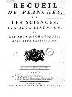 - ↑ Encyclopédie ou Dictionnaire raisonné des sciences, des arts et des métiers, Discours préliminaire (1751) . Voir aussi : le Placet des Libraires associés au comte d'Argenson (1749) et le Prospectus (1750)