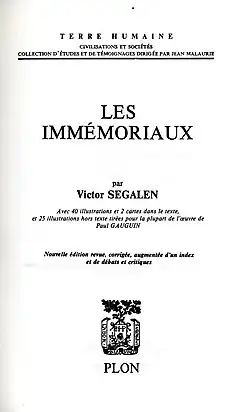 - Victor Segalen, Les Immémoriaux, 1956 (1993); or. 1907.