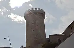 Un des monuments importants de ce village n’est autre qu’une tour de pierre appelée “ Torre Angioina”[2]. Elle fut construite sous le gouvernement de Jeanne Ire de Naples entre les années 1343-1382, sans savoir l'année exacte de sa création. La tour mesure 25 mètres de haut, possède un plan cylindrique, des murs couronnés, une série de becs et de créneaux. L’édifice servait d’habitation à la reine mais aussi de défense face aux ennemis. Elle fut plusieurs fois restaurée avant de devenir propriété de la famille d'Antini qui l’offrit à la commune en 1959.