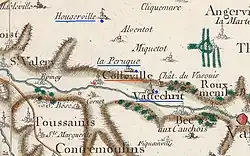 La carte de Cassini ci-contre montre qu'au milieu du XVIIIe siècle, Colleville est un bourg situé sur la Valmont.