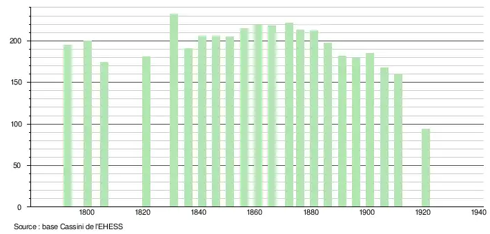 Sa population est de 147 habitants (32 feux) en 1760, 200 en 1800, 181 en 1818, 191 en 1836 et 215 en 1856[3].