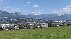 Si par le passé l'agriculture pouvait être plus importante sur les pentes orientales de la colline de Lémenc, celle-ci a progressivement diminué. Ainsi, la superficie agricole de la commune de Bassens utilisée en 2007 était de 15 %, espaces alors composés principalement de prairies, pâturées ou non, situées sur le versant[34]. Ce « versant pâturé et habité », selon le plan local d'urbanisme de la commune, a néanmoins conservé un aspect rural et compte encore d'anciennes fermes (incluant la ferme de Bressieux, dont la façade et la toiture sont inscrites aux monuments historiques avec le centre hospitalier spécialisé auquel elle appartient[35]) et d'autres maisons isolées[36].
