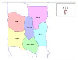 - ↑ (en) Mathurin C. Houngnikpo et Samuel Decalo, « Collines», in Historical Dictionary of Benin, The Scarecrow Press, Lanham, Toronto, Plymouth, 2013 (4e éd.), p. 102 (ISBN 9780810871717)