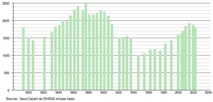 - ↑ Fiches Insee - Populations de référence de la commune pour les années 2006, 2007, 2008, 2009, 2010, 2011, 2012, 2013, 2014, 2015, 2016, 2017, 2018, 2019, 2020, 2021 et 2022.