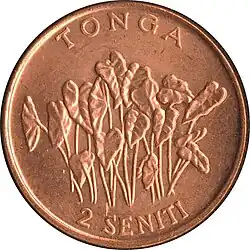 À Samoa et Tonga, le taro figure sur certaines pièces de monnaie (pièces de 10 sene aux Samoa[40] et de 2 seniti à Tonga[41]).