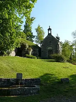 Ils arrivent dans les Vosges saônoises et se fixent sur le site d'Annegray[7] (Anagrates) au pied de la montagne Saint-Martin, sur la commune actuelle de La Voivre dans la Haute-Saône[8], sur le site d'un ancien castrum romain ruiné[9]. Les moines entreprennent le défrichement des bois, la construction de bâtisses de chaume. En même temps, ils accueillent les malades et commencent la formation de nouveaux moines. Colomban effectue une première retraite dans une grotte de la montagne (actuellement sur le territoire de Sainte-Marie-en-Chanois). Selon la légende, la grotte était occupée par un ours qui la lui céda, et Colomban lui-même aurait fait jaillir la « source miraculeuse » située à proximité.