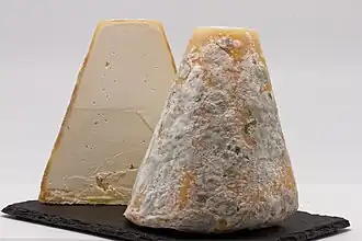 Les laits crus de vache et de chèvre sont mélangés dans des proportions variables selon la saison. L'affinage se fait à la saumure, puis par raclage ou brossage[1],[2].