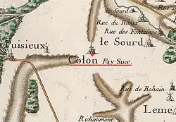 La carte de Cassini ci-contre, datant du XVIIIe siècle, montre que Colon est une paroisse et Fay un hameau qui est de nos jours situé un peu à l'écart au nord du village.