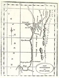 - ↑ “The most cursory exploration had preceded the British decision to found a colony at the Swan River; the most makeshift arrangements were to govern its initial establishment and the granting of land; and the most sketchy surveys were to be made before the grants were actually occupied. In addition, very little thought seems to have been given to the Aboriginal inhabitants prior right to occupation of the land, and the possible consequences of depriving them of that right” (p.29)