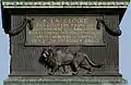 • Le socle de la colonne est en bronze. Il est surmonté de quatre coqs gaulois, placés aux angles, et comporte une sculpture de lion par Antoine-Louis Barye.