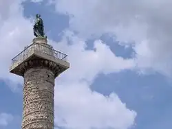- Au sommet de la colonne s'élevait une statue de bronze de Marc-Aurèle, détruite au cours du Moyen Âge.