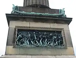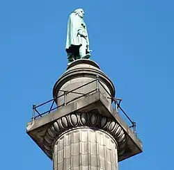 Après la mort du duc en 1852, en commun avec d'autres villes, Liverpool a décidé d'ériger un monument pour célébrer ses réalisations. Un comité fut mis en place pour organiser les souscriptions publiques, mais l'argent tarda à rentrer. Un concours a été mis en place en 1856 pour trouver un concepteur pour la colonne, et celui-ci a été remporté par l'architecte Andrew Lawson d'Édimbourg. Il y a eu d'autres retards pendant qu'un site approprié a été trouvé, avec des sites au sommet de Duke Street et Bold Street, en face de l'hôtel Adelphi et de Prince's Park en cours d'examen avant que l'emplacement final ne soit déterminé [1]. En 1861, un deuxième concours, cette fois pour la statue du duc, est remporté par George Anderson Lawson, frère du concepteur de la colonne. La conception de la colonne et du socle ressemble étroitement à celle du monument de Melville commémorant Henry Dundas, Lord Melville à St Andrew Square, Édimbourg [2] lui-même vaguement calqué sur la colonne Trajane à Rome.