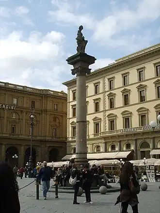 Alors que la place de la République date du XIXe siècle, il y avait auparavant ici le Mercato Vecchio (Vieux Marché) de Florence. Une colonne sur le site avait été érigée au XVe siècle, à l'intersection des anciennes routes romaines, le Cardo et le Decumanus Maximus, l'ensemble formant le centre de la Florence romaine antique.