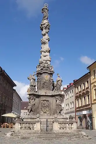 Cette colonne de peste baroque a été construite par le sculpteur jésuite František Baugut. Elle a été érigée entre 1713 et 1715 en commémoration de la peste contemporaine qui a tué plus d'un millier de personnes. La colonne est décorée par la statue de la Vierge Marie Immaculée et les thèmes typiques du travail de Kutná Hora (reliefs des mineurs).