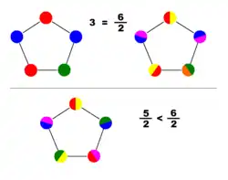 En outre, le nombre chromatique fractionnaire est proche du nombre chromatique à un facteur logarithmique près[1], en fait, on a :