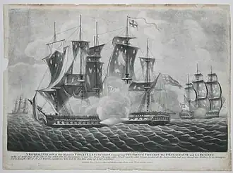Le , la frégate HMS Minerva aperçoit dans le lointain quatre bâtiments français, dans la Manche. Le lendemain, la Minerva rejoint une petite escadre de cinq frégates britanniques, sous les ordres de Warren, et lui communique cette information[2]. Warren décide immédiatement de se mettre à sa recherche et, le lendemain au lever du jour, vers 4 h 0 du matin, on lui signale trois frégates et une corvette à sept ou huit lieues (24,5-28 milles) au sud-ouest de Guernesey. L'escadre française se met en ligne de bataille, et Warren signale à ses frégates d'engager le combat, et mène lui-même l'attaque à bord du Flora, soutenu par l'Arethusa. Profitant de conditions météorologiques à leur avantage, les Britanniques parviennent à contraindre l'escadre française à un combat rapproché qui durera près de trois heures, avant que la Pomone et la Babet n'amènent leurs pavillons vers 11 h[3].