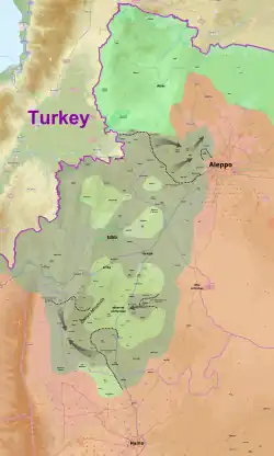 | Lieu | Gouvernorat d'Idlib, ouest du gouvernorat d'Alep, nord du gouvernorat de Hama |