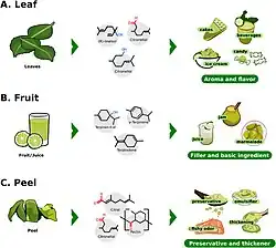 - ↑ (en) Masayoshi Sawamura, Citrus Essential Oils: Flavor and Fragrance, John Wiley & Sons, (ISBN 978-1-118-07438-1, lire en ligne), p. 103