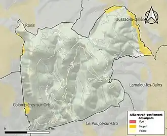 Le retrait-gonflement des sols argileux est susceptible d'engendrer des dommages importants aux bâtiments en cas d’alternance de périodes de sécheresse et de pluie. 3,4 % de la superficie communale est en aléa moyen ou fort (59,3 % au niveau départemental et 48,5 % au niveau national). Sur les 170 bâtiments dénombrés sur la commune en 2019, 35 sont en aléa moyen ou fort, soit 21 %, à comparer aux 85 % au niveau départemental et 54 % au niveau national. Une cartographie de l'exposition du territoire national au retrait gonflement des sols argileux est disponible sur le site du BRGM[18],[Carte 2].