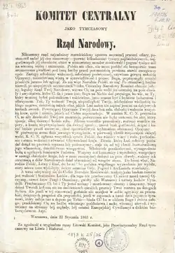 Le Comité central national dirige les préparatifs de l'insurrection janvier, élargi l'organisation clandestine, prélève un impôt national, appelle à la création d'une police nationale. Le , le Comité proclame l'abolition du servage sans compensation pour les propriétaires terriens, le rachat des terres, ainsi que l'égalité des droits pour les Juifs.