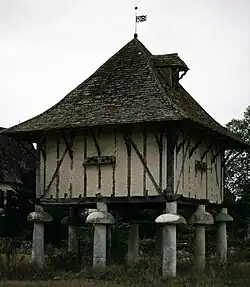- Un pigeonnier[2] qui repose sur neuf colonnes de pierre dont le haut est terminé en forme de champignon pour éviter l'atteinte des rongeurs.