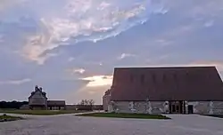 - un second enclos ou basse-cour correspondant à la ferme. Plus vaste, le bâti (grange, bergeries, cellier, pressoir) est massé sur les côtés. La plupart de ces constructions disparaît dans le courant du XIXe siècle. Subsistent, quasi intacts, la grange et le four à pain, la maison du régisseur, tronquée d'un tiers en 1944, et des éléments de la clôture avec le portail.