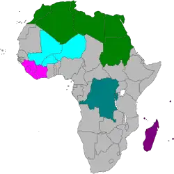 - Grande zone arabe de libre-échange (GAFTA) (comprend également la plupart des États du Moyen-Orient)