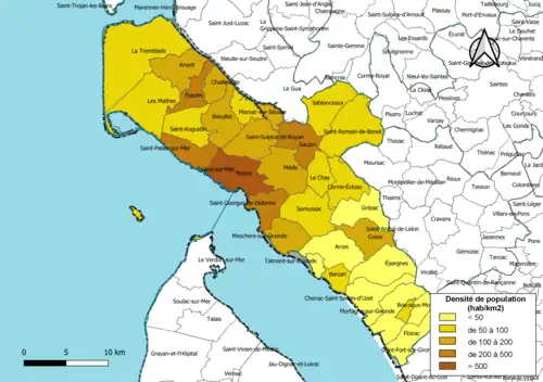 | Saujon | 17421 | Saujonnais | 18,07 | 7 314 (2022) | 405 |