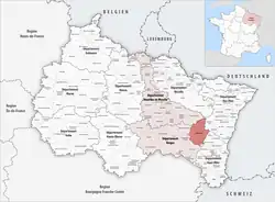 Localisation dans les Vosges. Les communes de Meurthe-et-Moselle sont en marron. | |