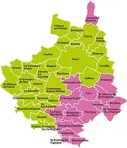| Prin-Deyrançon | 79220 | Prinois | 16,12 | 597 (2022) | 37 |