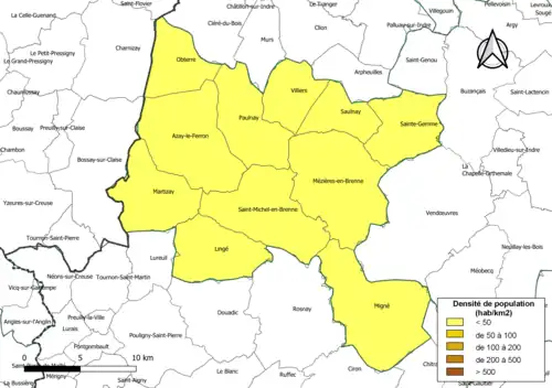| 2 | Lingé, Migné, Obterre, Paulnay, Saint-Michel-en-Brenne, Sainte-Gemme, Saulnay, Villiers |
