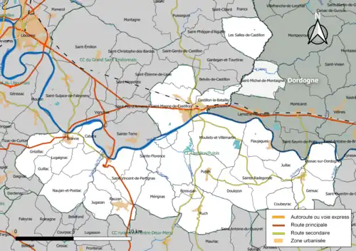 Située au centre-est du département de la Gironde, la communauté de communes Castillon Pujols regroupe 31 communes et présente une superficie de 228 km2[5].