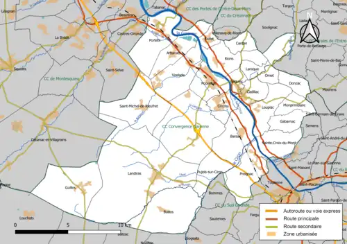 Située au centre du département de la Gironde, la communauté de communes Convergence Garonne regroupe 27 communes et présente une superficie de 312,4 km2[3].