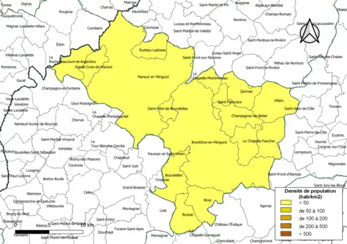 | Champagnac-de-Belair | 24096 | Champagnacois | 18,46 | 783 (2022) | 42 |