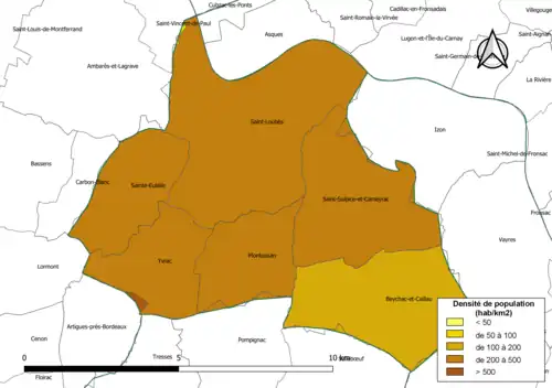 | Sainte-Eulalie | 33397 | Eulaliens | 9,06 | 4 922 (2022) | 543 |