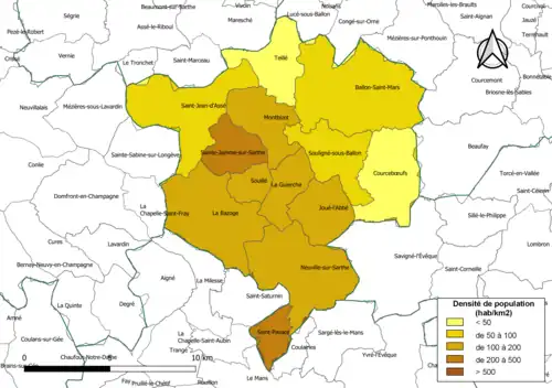 | Souligné-sous-Ballon | 72340 | Soulignéens | 12,76 | 1 237 (2022) | 97 |