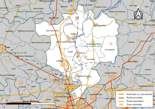 Situation de la communauté de communes dans la Sarthe. | |