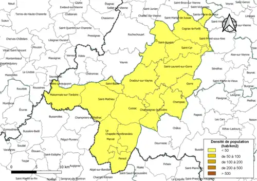 | Maisonnais-sur-Tardoire | 87091 | 31,89 | 376 (2022) | 12 | |
