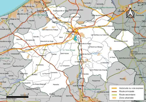 Située dans l'est du département du Calvados, la communauté de communes Terre d'Auge regroupe 44 communes et s'étend sur 323,6 km2[7].