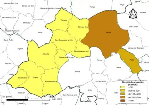| Dampierre-en-Graçay | 18085 | Dampierrois | 9,38 | 248 (2022) | 26 |