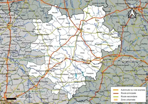 Située au nord-est du département de la Charente, la communauté de communes de Charente Limousine regroupe 58 communes et présente une superficie de 1 394,9 km2[3].