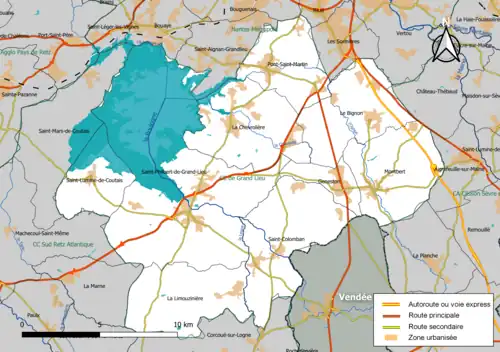 Située au sud du département de la Loire-Atlantique, la communauté de communes de Grand Lieu regroupe 9 communes et présente une superficie de 260 km2[3].