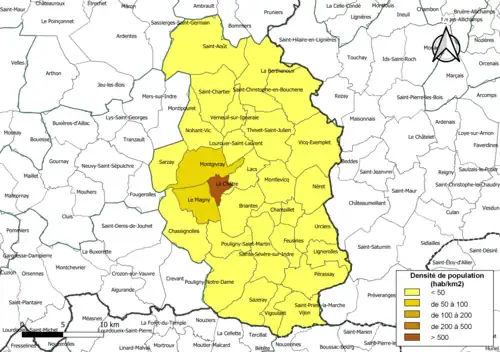 Elle s'étend sur 30[2],[4] communes, dont 26 dans le canton de La Châtre et 4 dans le canton de Neuvy-Saint-Sépulchre.