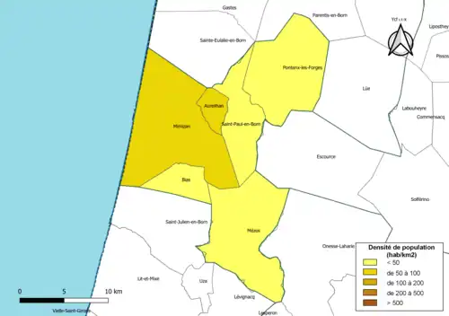 | Saint-Paul-en-Born | 40278 | Saint-Paulais | 43,53 | 982 (2022) | 23 |