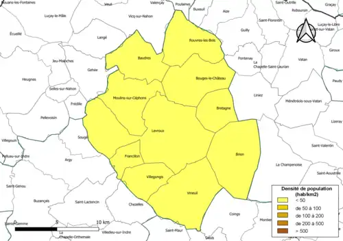 | Moulins-sur-Céphons | 36135 | Moulinois | 32,17 | 277 (2022) | 8,6 |